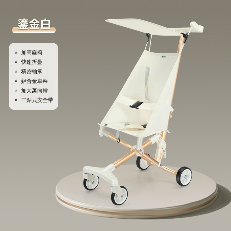 2分鐘前【能上飛機的嬰兒推車】新款鋁合金嬰兒推車 輕便可折疊 出行易攜帶 - 鎏金白輕便折疊嬰兒推車