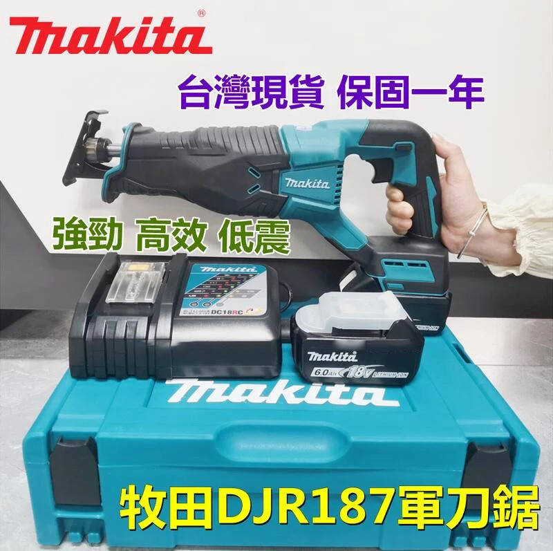 2分鐘前特價出清 牧田 18v makita 軍刀鋸 馬刀鋸 電鋸 往復鋸 木工鋸 小型電鋸 電動工具 牧田電池 外匯 - 18v DJR187大軍刀鋸【二電一充】