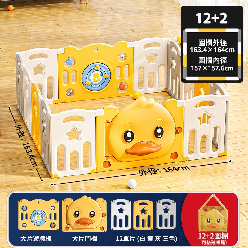 2分鐘前愛他/她!就給他/她滿滿的愛!寶寶學步遊戲圍欄,呵護寶寶安全【週年特賣,買1送4】 - 可折疊小鴨子款【12+2】163-164cm圍欄