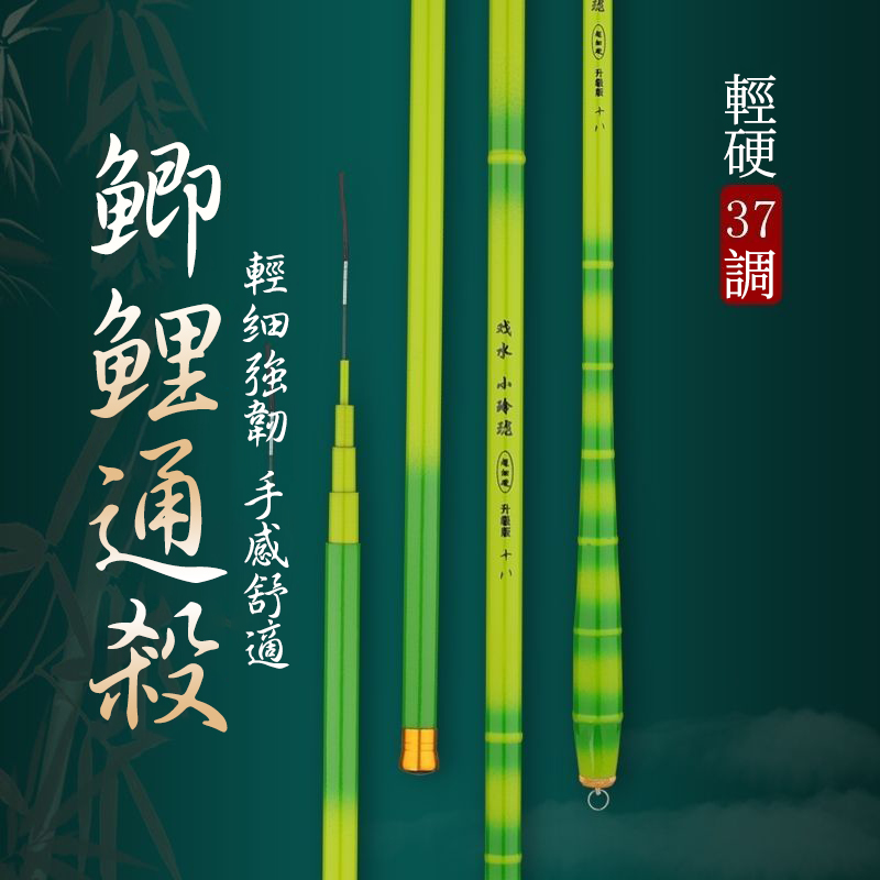 15分鐘前【新上市 買一送一】小玲瓏魚竿,37調綠竹魚竿 超細青竹釣手竿 - (買一送一)18尺(5.4m)+13尺(3.9m)+竿梢 NT$1690