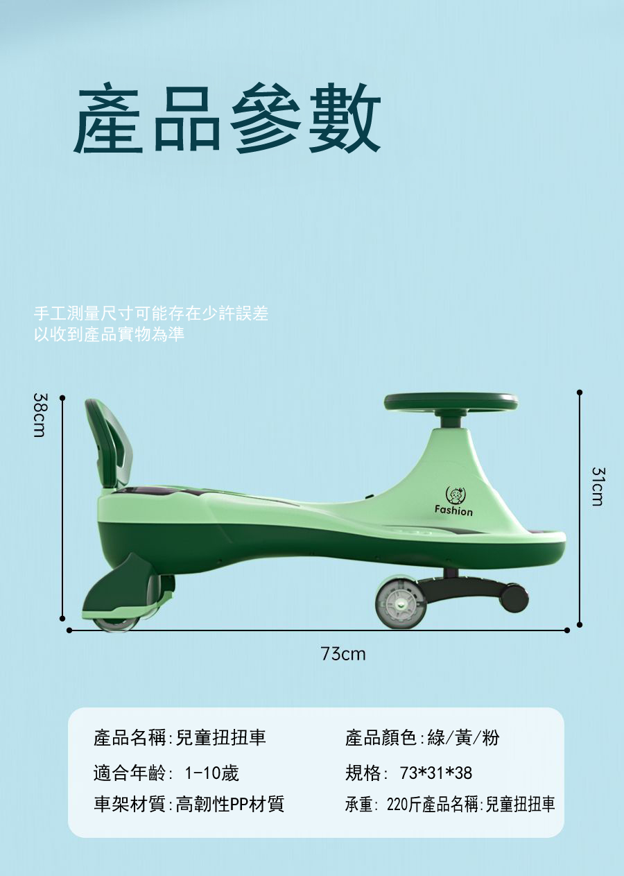 4分鐘前【日本東京熱銷】兒童扭扭車,寶寶大人都可坐 - 高配款 靜音閃光輪+音樂燈光 NT$1750