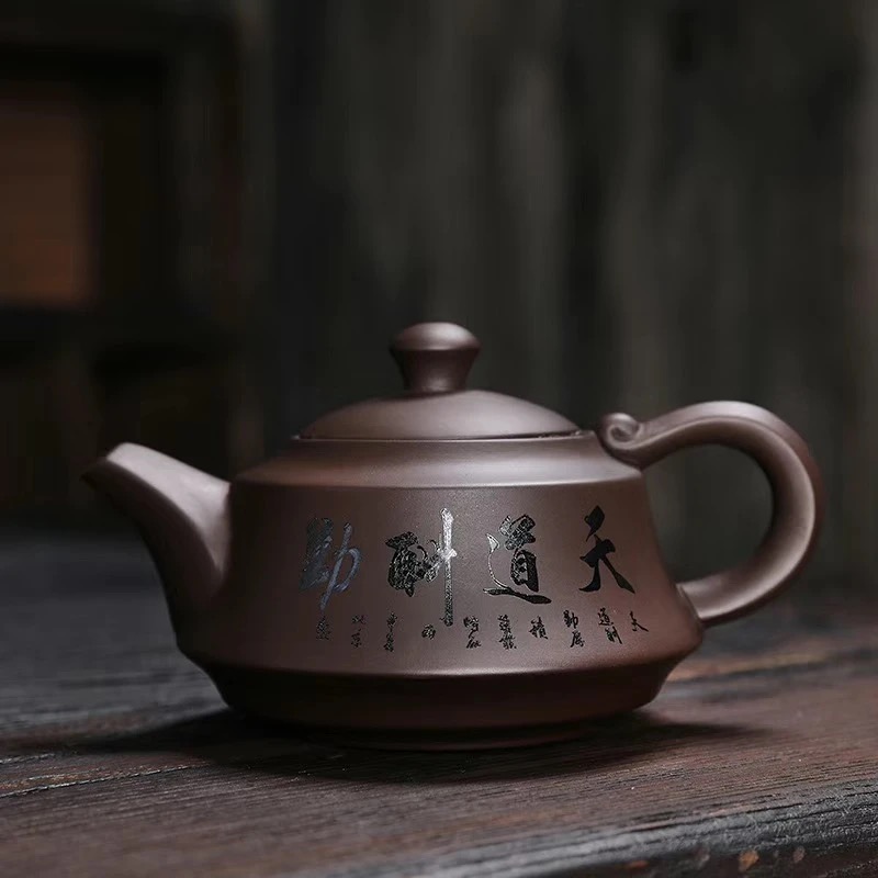 5分鐘前宜興紫砂壺原礦紫泥四方龍尊茶壺,尊貴與典雅的生活儀式,八方新氣藝術佳作 - 紫砂如意壺-天道酬勤(240ML)--贈兩杯