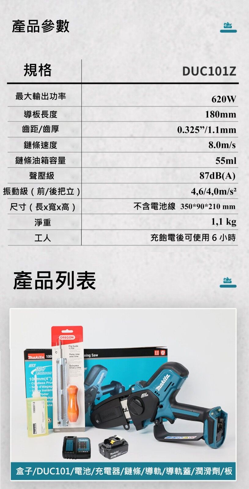 15分鐘前「牧田官方旗艦店」 DUC101小型鋰電手持電鋸 園林修剪 木材切割 21v大容量鋰電池 馬力強勁切割不卡殼 - 4吋21v鋰電鋸「兩電一充」 NT$2280