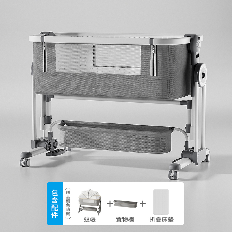 20分鐘前熱銷萬台!【寶寶的專屬空間】免安裝可折疊多功能嬰兒床,一床多用可移動、可搖擺,輕鬆拼接大床陪睡! - 【尊享款】床墊+置物籃+蚊帳+尿佈台+床圍