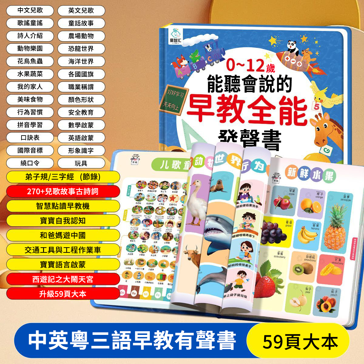 5分鐘前【二年質保 I 防水耐斯】會說話的早期教育有聲書0-12歲中英粵三語兒童早期教育啟蒙學習手指點讀書(送充電線) - 常規款【啟蒙早教】15主題800內容